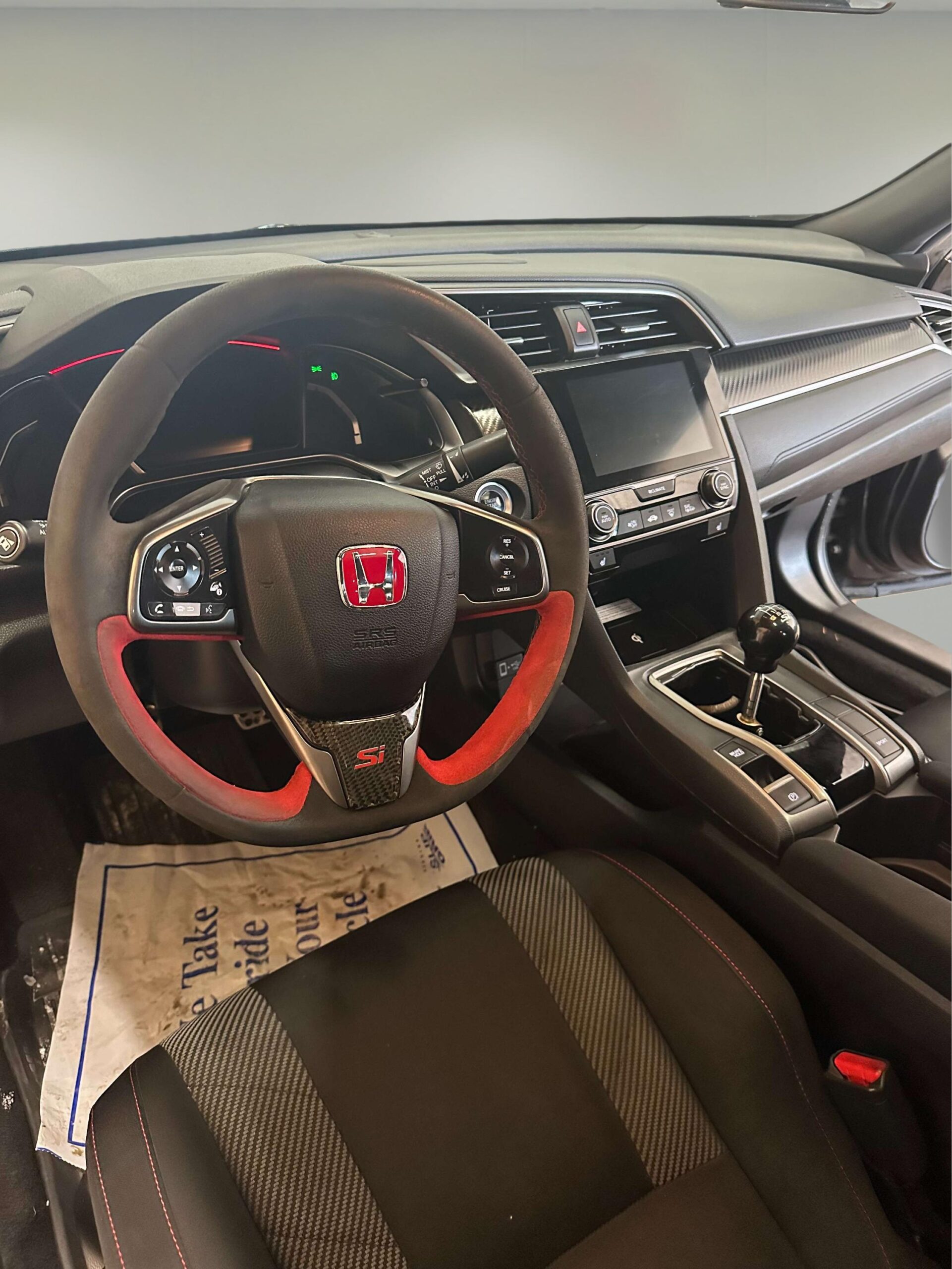 Leather-wrapped steering wheel and aluminum shift knob