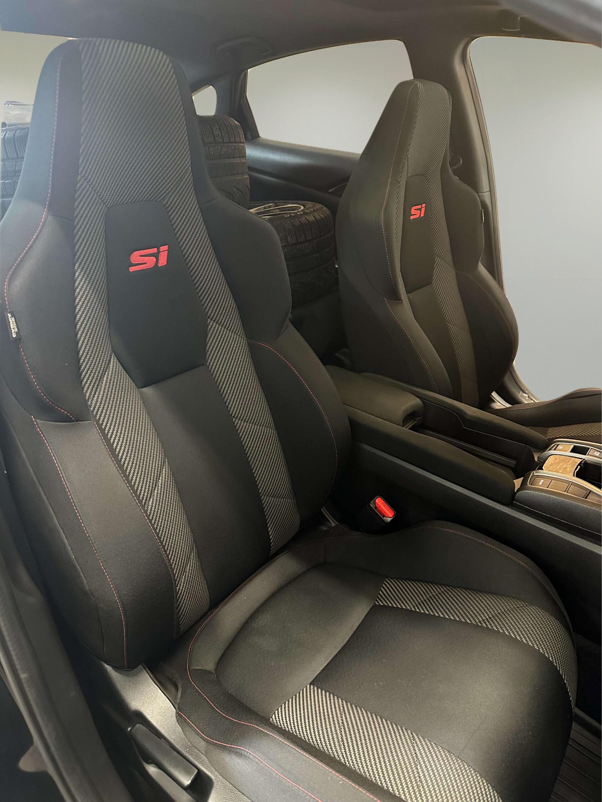 Sport seats with red contrast stitching