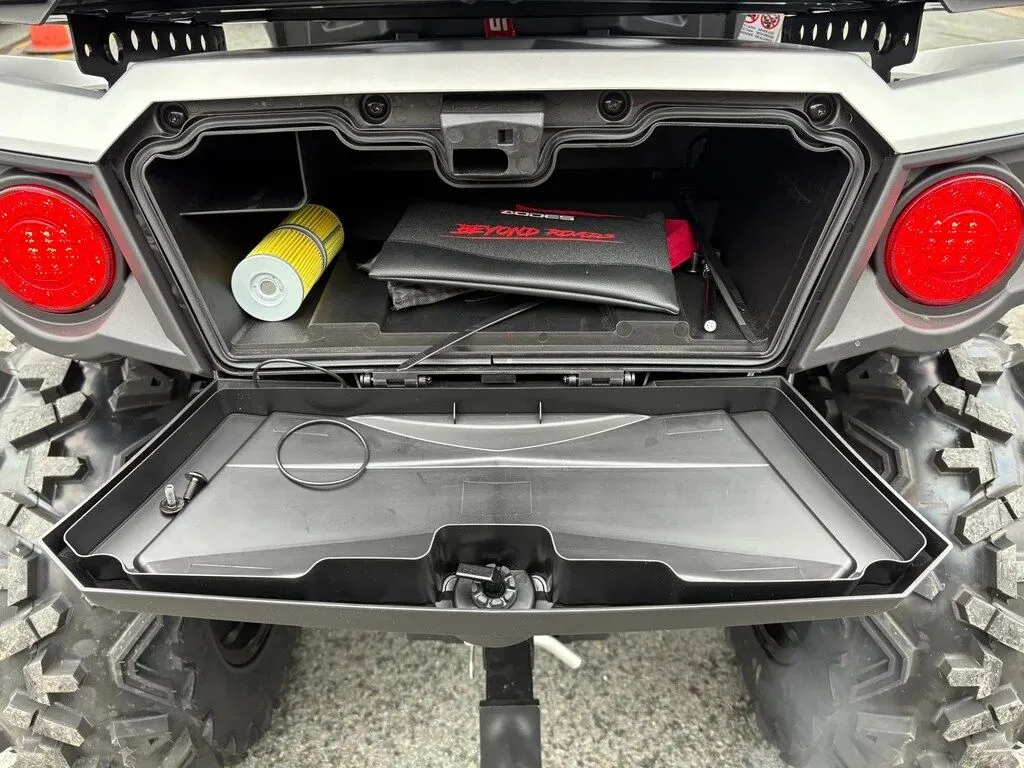 Delivering performance, reliability and unrivalled comfort. The PathCross 650-L gives you a premium 2-Up riding experience that will take you through uncharted territory with ease and comfort. The powerful V-Twin 649cc DHOC motor and CVTECH CVT clutch system will deliver enough performance for any task. The full size beam chassis features a 3500lbs winch and 4×4 with locking front differential giving you peace of mind to get you out of the toughest situations. No matter how rugged the terrain gets you can count on the adjustable gas coil over suspension system, and adjustable EPS settings to keep you in total control while allowing you and your passenger to have a smooth comfortable ride. Your passenger will want to ride longer and harder thanks to the premium 2-Up seat configuration, Hand grips and a backrest means you can go Beyond Roads like never before.